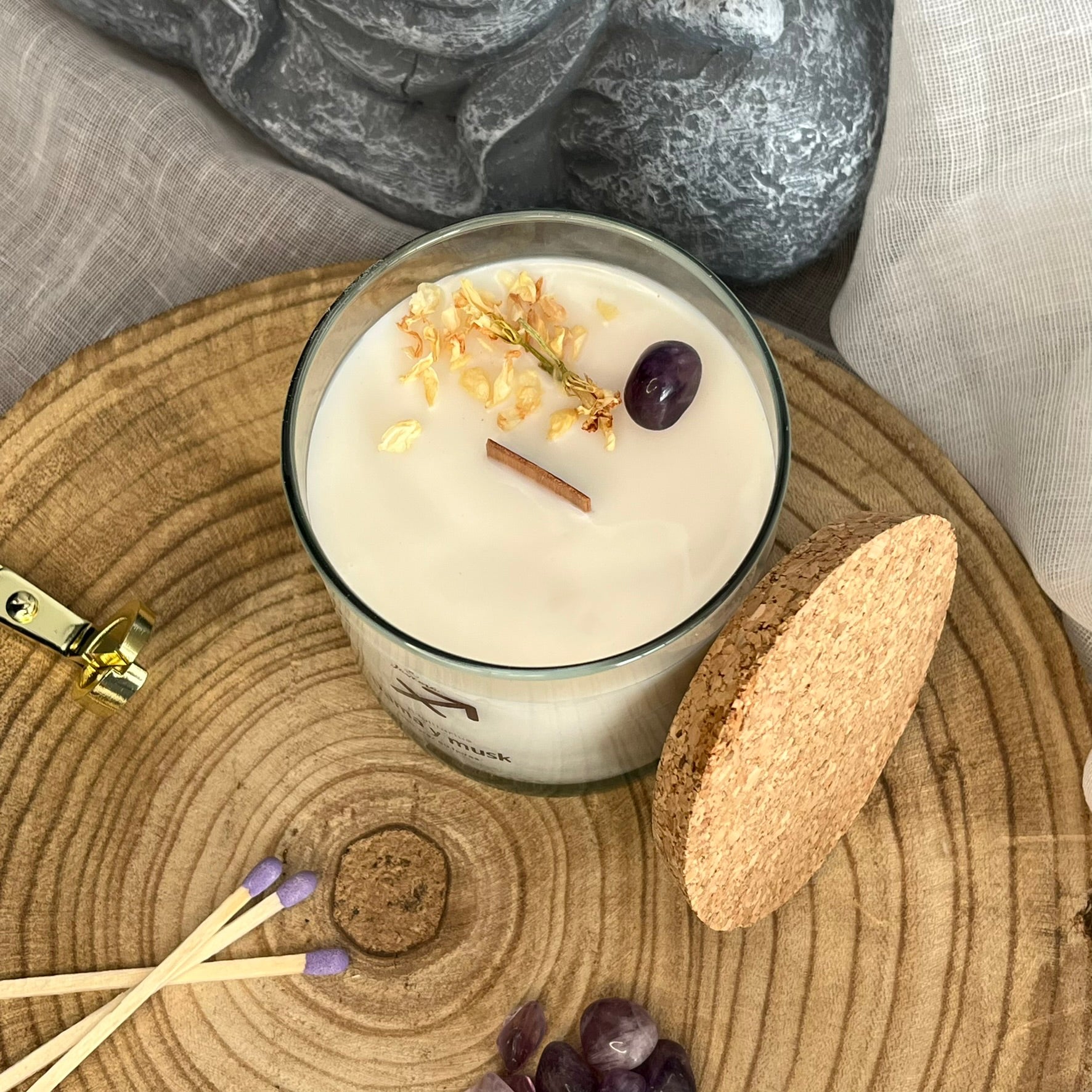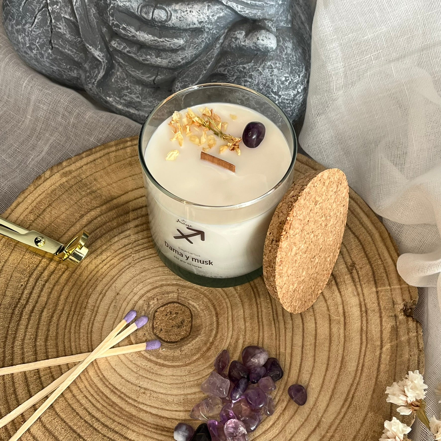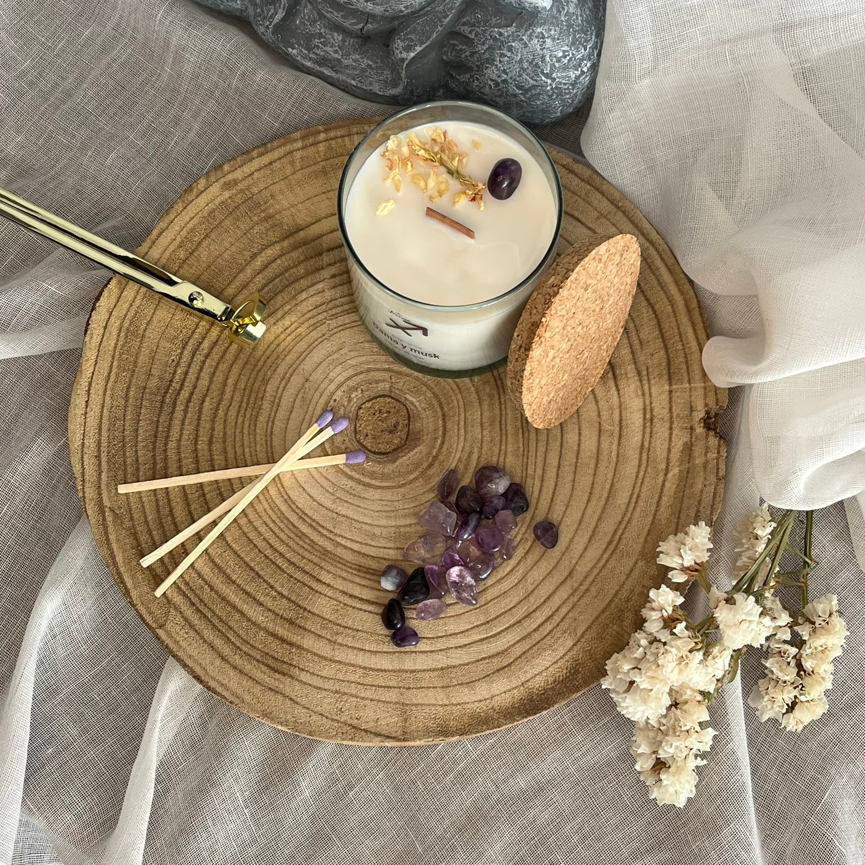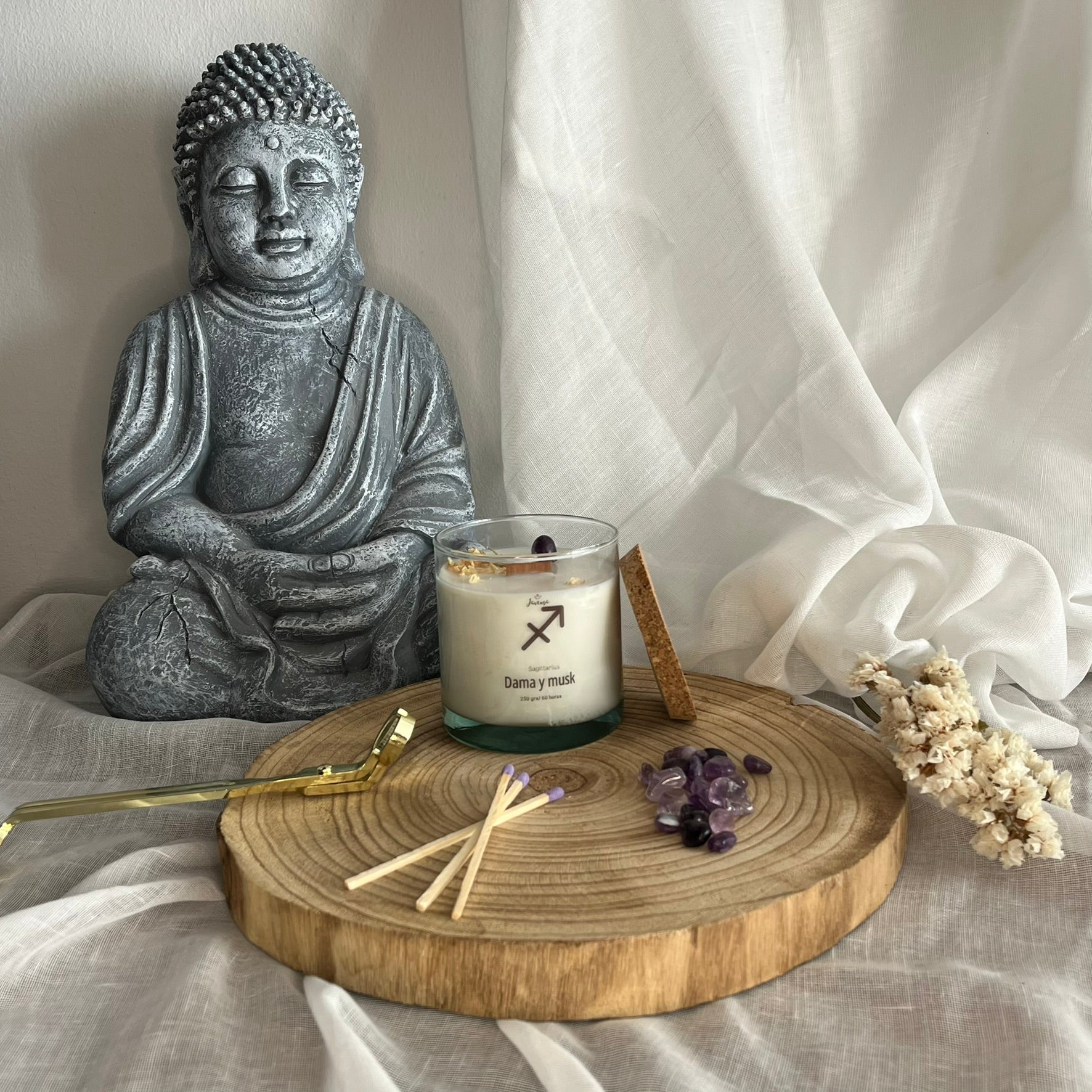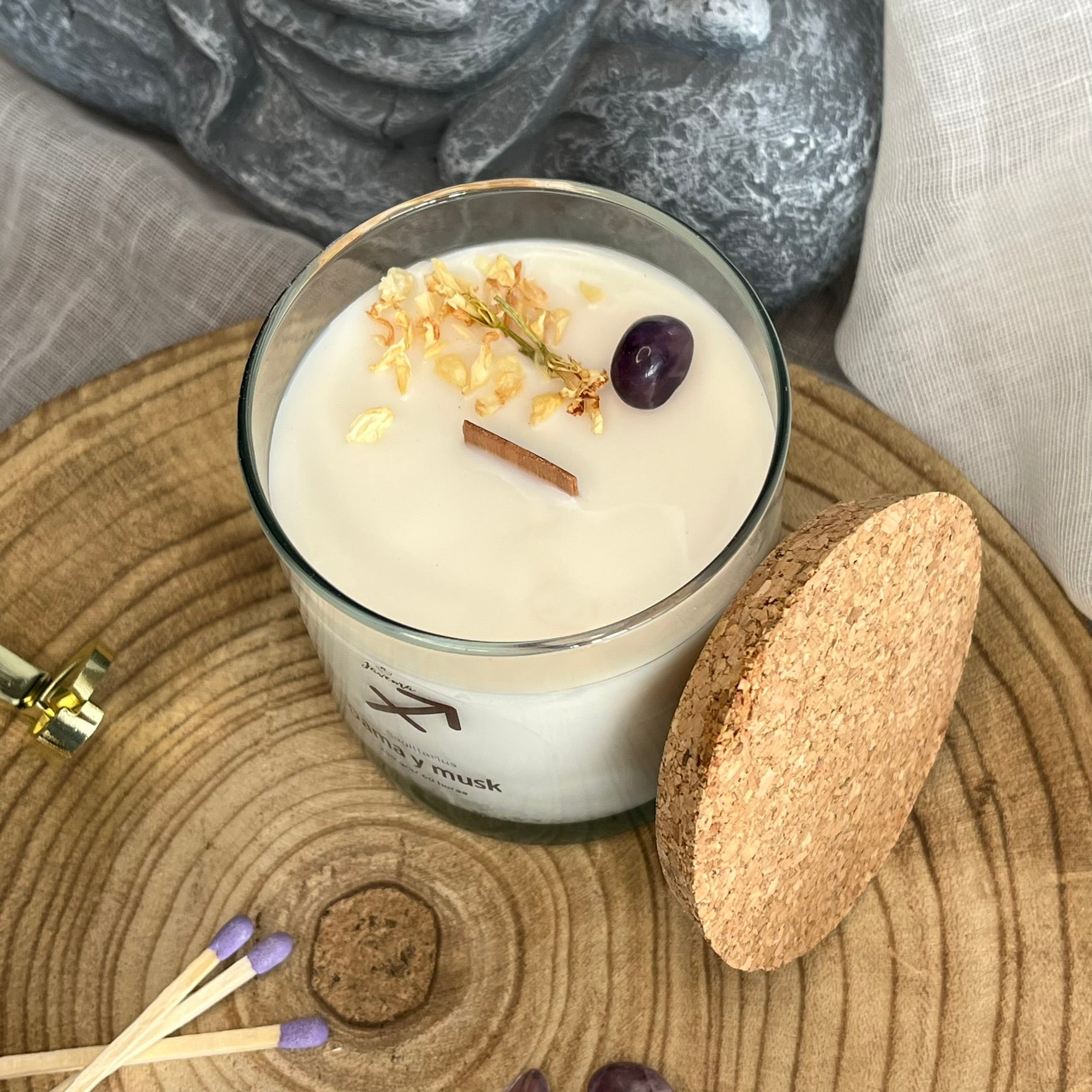 Esta vela mezcla palo santo, limón y frambuesa, Diosa de las flores y Dama y musk, aromas que animan a salir, moverse y soñar.