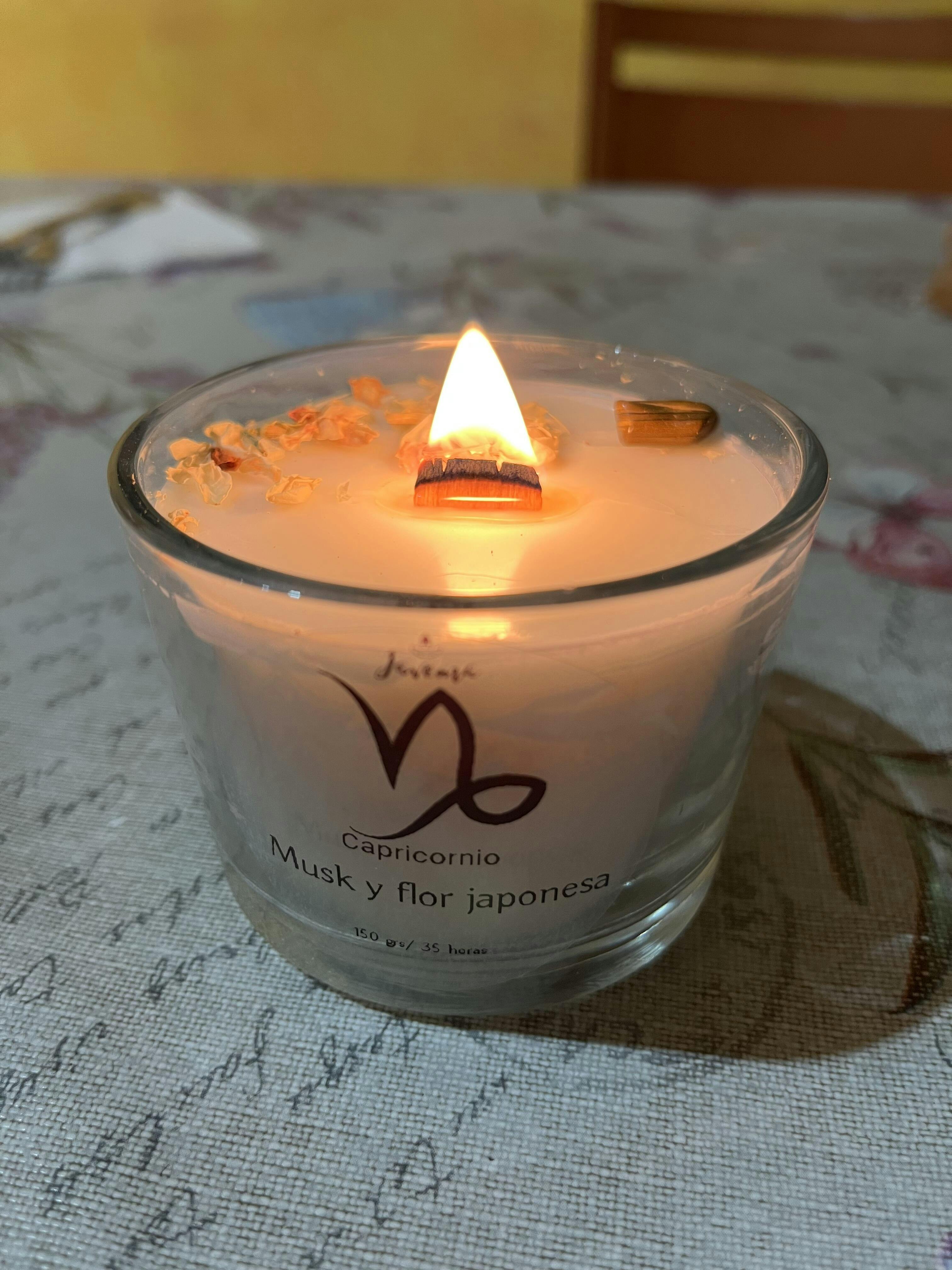 Hecha con cera de soja vegana y mecha de madera, transforma tu espacio en un lugar fresco, luminoso y lleno de energía buena.