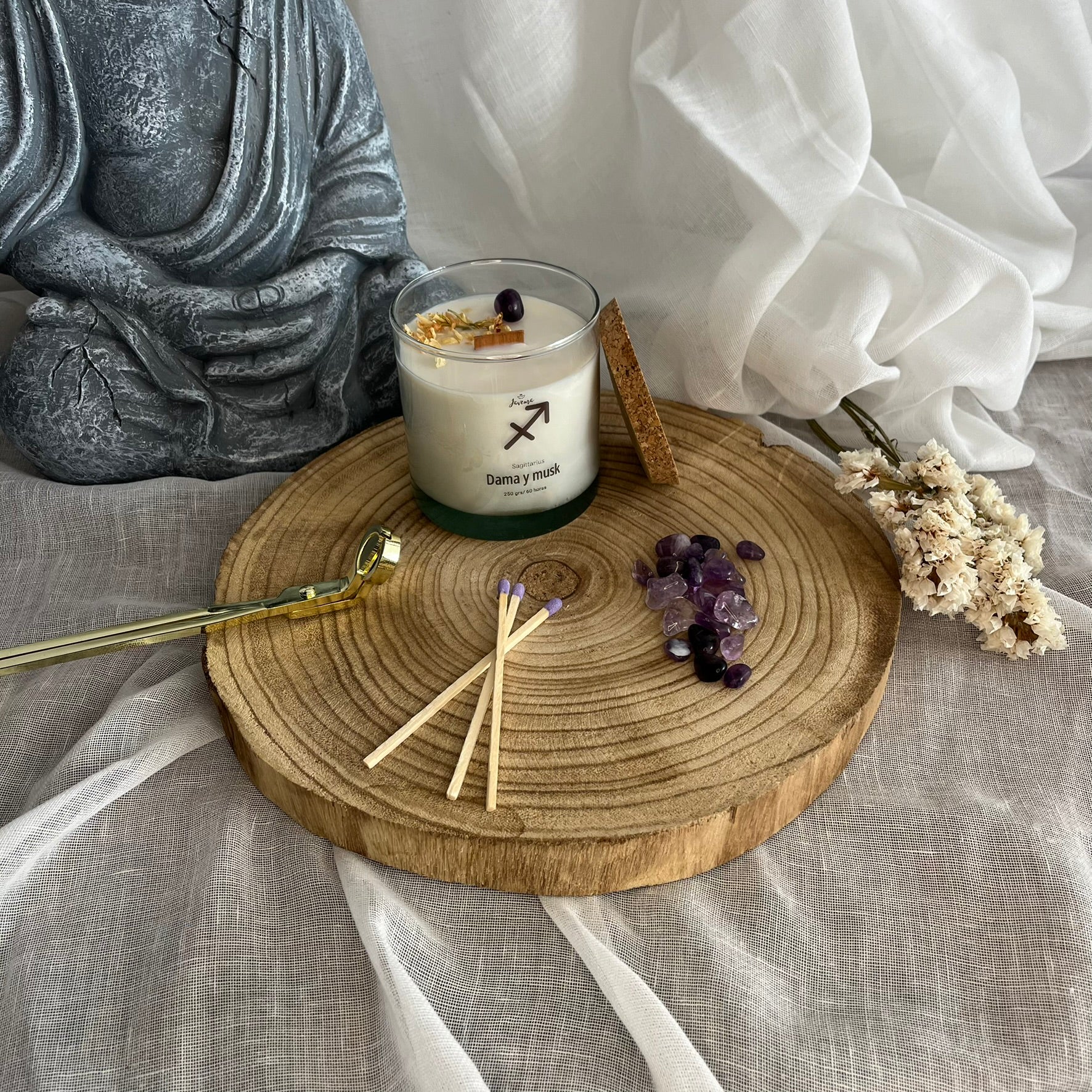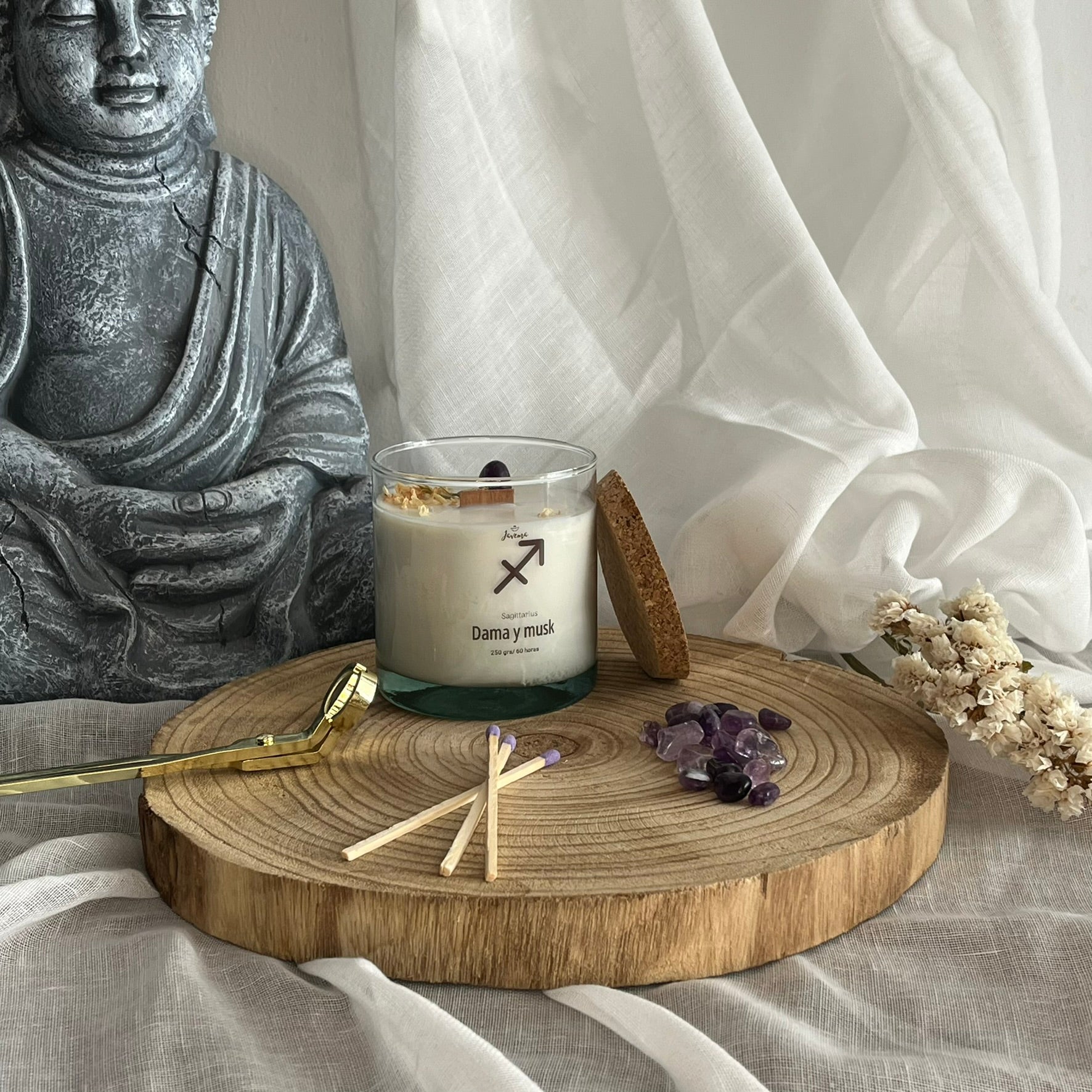 Esta vela mezcla palo santo, limón y frambuesa, Diosa de las flores y Dama y musk, aromas que animan a salir, moverse y soñar.
